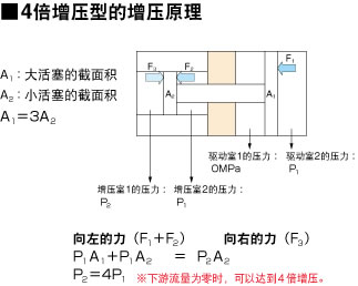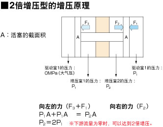 增压阀是将一次侧压力增加至2倍(或者4倍),然后将高压从二次侧送出的产品。增压阀的构造,相当于有2个气缸,由2个增压室和2个驱动室构成。增压室内交替2个活塞运动,将受到的压力通过受压面积比转换为更高的压力从二次侧输出。另外,排气是将驱动室的空气排出。